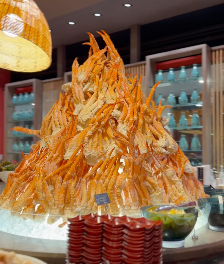この日は幸運にも「カニ食べ尽くしナイト」でした。カニのパフェ、カニマウンテン…まさかのカニ尽くしの夜。カニ好きにはたまらない特別イベントで、テンションが一気に上がりました。