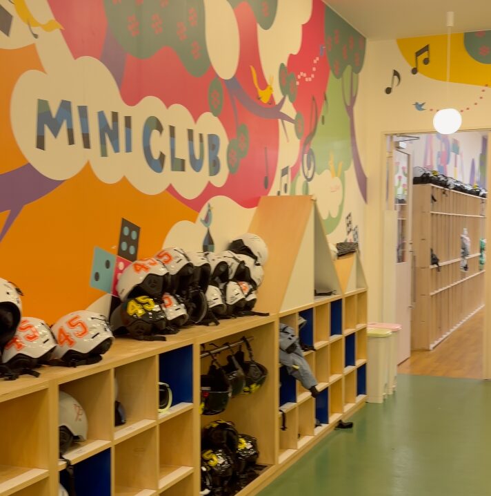 初日にここで手続きを済ませると、翌朝以降は子ども本人を連れていくだけでOK。スキー用具はすべてミニクラブの棚で管理されて、スキー靴の着脱もスタッフがやってくれます(子どものスキー靴って本当に硬いんですよね…)。