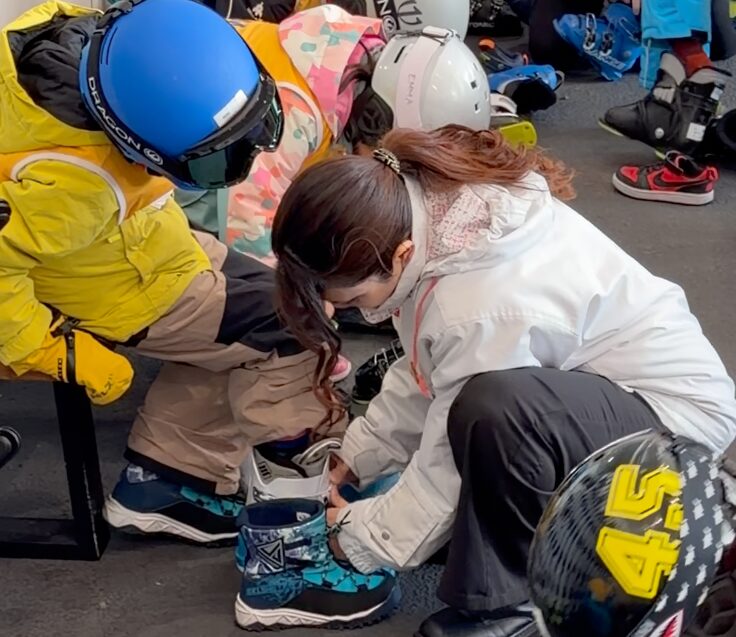 そしてスキーブーツを履かせてくれるのも地味に助かる!(あれ、大変なのよ。)