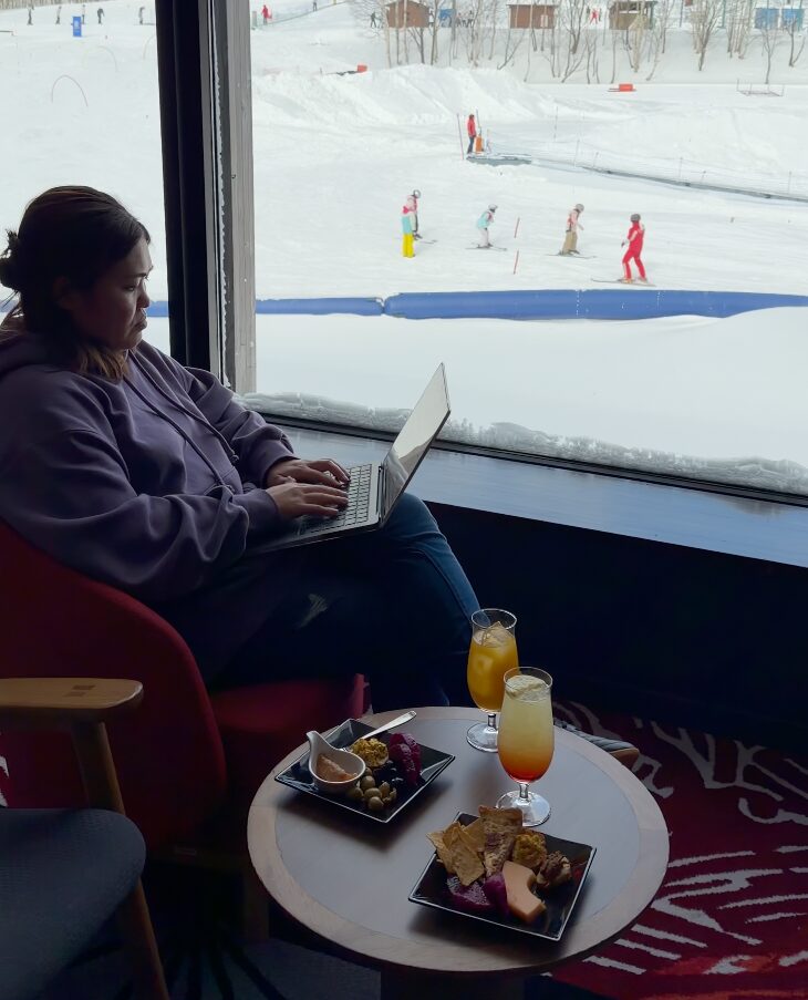 「やることがなさすぎて逆に戸惑う」という感覚、初めて経験しました。アルコールを頼んで、ゆっくり景色を眺める。北海道の冬の清々しい空気の中で、誰にも何も急かされない時間。