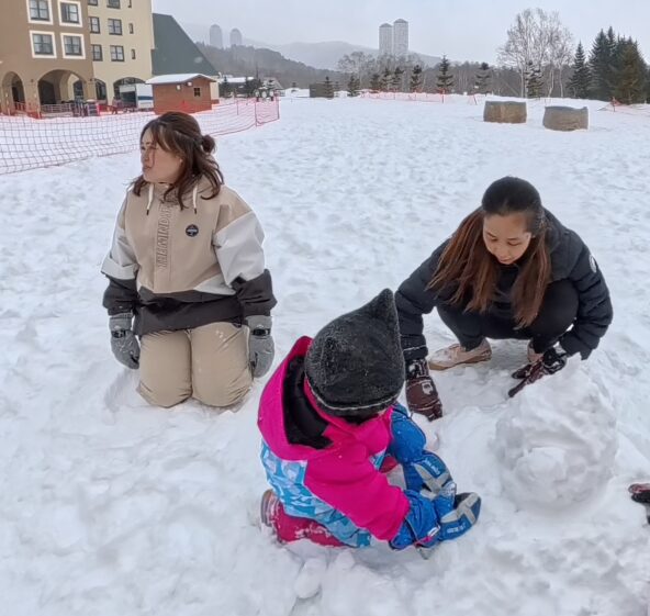 時間があったので、アメージングファミリーの雪だるま作りに参加!スタッフさんが付いててくれるので、お任せ気分で参加できるのが楽ちん!